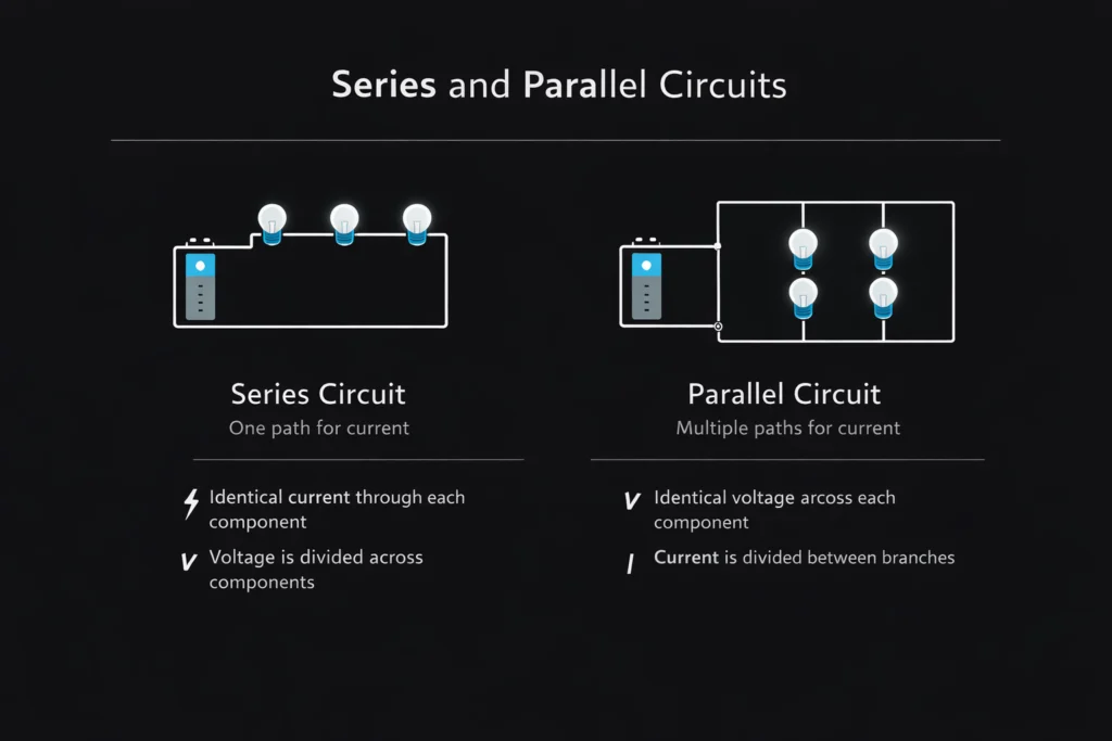 Every electrical circuit you will ever encounter, from the simplest flashlight to the most complex computer motherboard, is built from combinations of just two fundamental connection types: series and parallel. Everything else in circuit analysis, no matter how complicated it looks at first, is just these two patterns combined in different ways. Understanding the difference between them, and what that difference means for current, voltage, and resistance, is the single most important skill in basic electronics and electrical physics.